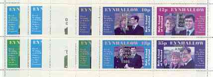 Eynhallow 1986 Royal Wedding perf sheetlet of 4 opt'd Duke & Duchess of York in silver, the set of 5 progressive proofs, comprising single colour, 2-colour, two x 3-colour combinations plus completed design, all with opt. (20 proofs) (gum disturbance to margins at right) unmounted mint