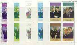 Gairsay 1986 Royal Wedding perf sheetlet of 4 opt'd Duke & Duchess of York in gold, the set of 5 progressive proofs, comprising single colour, 2-colour, two x 3-colour combinations plus completed design, all with opt. (20 proofs) unmounted mint