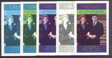 Grunay 1986 Royal Wedding imperf deluxe sheet (£2 value) the set of 5 progressive proofs, comprising single colour, 2-colour, two x 3-colour combinations plus completed design, (5 proofs) unmounted mint