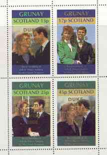 Grunay 1986 Royal Wedding perf sheetlet of 4 opt'd Duke & Duchess of York in gold, unmounted mint