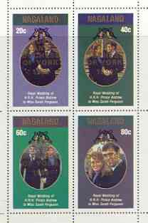 Nagaland 1986 Royal Wedding perf sheetlet of 4 opt'd Duke & Duchess of York in gold, unmounted mint
