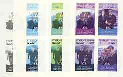 Oman 1986 Royal Wedding imperf sheetlet of 4 opt'd Duke & Duchess of York in gold, the set of 4 progressive proofs, comprising single colour, 2-colour & two x 3-colour combinations all with opt. (16 proofs) unmounted mint