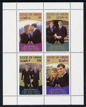 Oman 1986 Royal Wedding perf sheetlet of 4, unmounted mint