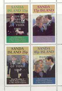 Sanda Island 1986 Royal Wedding perf sheetlet of 4 opt'd Duke & Duchess of York in silver, unmounted mint