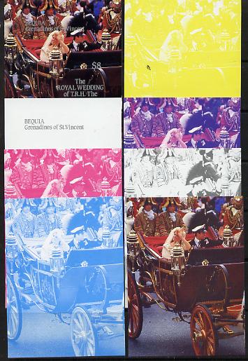 St Vincent - Bequia 1986 Royal Wedding $8 m/sheet set of 8 imperf progressive colour proofs comprising the 5 individual colours plus 3 composites unmounted mint. NOTE - this item has been selected for a special offer with the price significantly reduced
