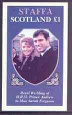 Staffa 1986 Royal Wedding imperf souvenir sheet (£1 value) single progressive proof in blue, magenta & black (yellow omitted) unmounted mint (note the remaining progressive proofs were damaged by water at the printers)