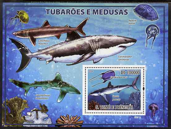 St Thomas & Prince Islands 2009 Sharks & Jelly Fish perf s/sheet unmounted mint