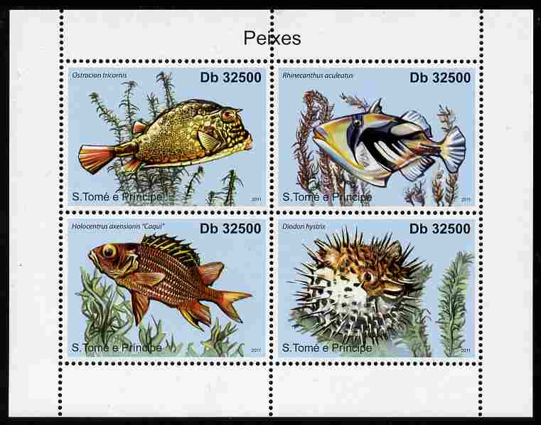 St Thomas & Prince Islands 2011 Fish perf sheetlet containing 4 values unmounted mint