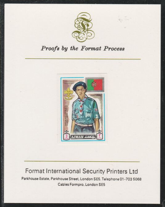 Ajman 1971 World Scouts - Portugal 3Dh imperf mounted on Format International proof card as Mi 906B