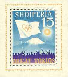 Albania 1964 Tokyo Olympic Games (3rd issue) perf m/sheet (Flag & Mt Fuji) unmounted mint, SG MS 821a, Mi BL 22