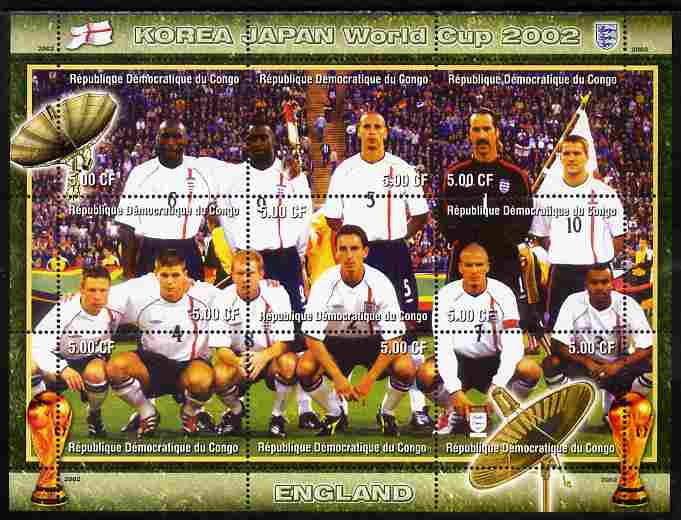 Congo 2002 Korea Japan World Cup Football Teams - England perf composite sheetlet containing 9 values unmounted mint. Note this item is privately produced and is offered purely on its thematic appeal
