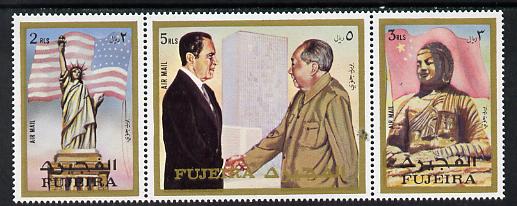 Fujeira 1972 Pres Nixon's visit to China strip of 3 unmounted mint (Mi 1099-1101A)