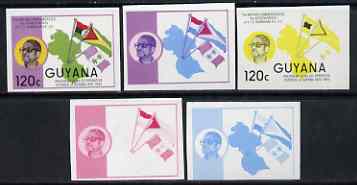Guyana 1986 Pres Burnham Commem 120c set of 5 imperf progressive proofs comprising 2 individual colours, two 2-colour composites plus all 4 colours unmounted mint