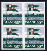 Iceland 1958 40th Anniversary of Flag 50k imperf block of 4 being a 'Hialeah' forgery on gummed paper (as SG 359)