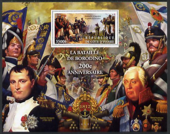 Ivory Coast 2012 Battle of Borodino large perf sheetlet containing 3 values unmounted mint