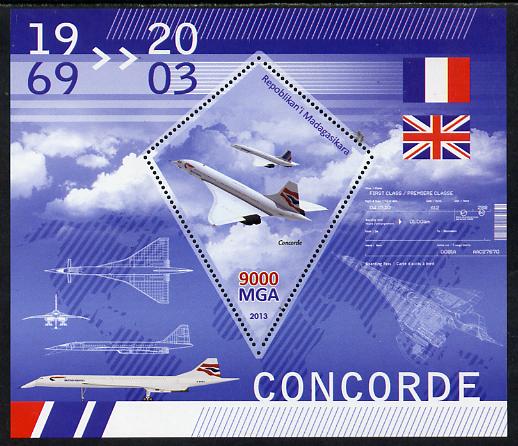 Madagascar 2013 Concorde perf deluxe sheet containing one diamond shaped value unmounted mint