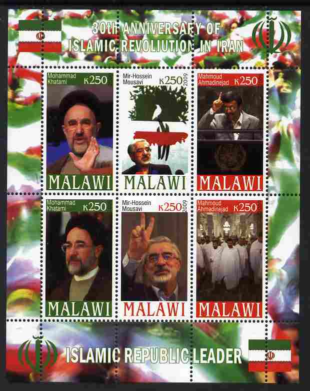Malawi 2009 30th Anniversary of Islamic Revolution in Iran #4 perf sheetlet containing 6 values unmounted mint