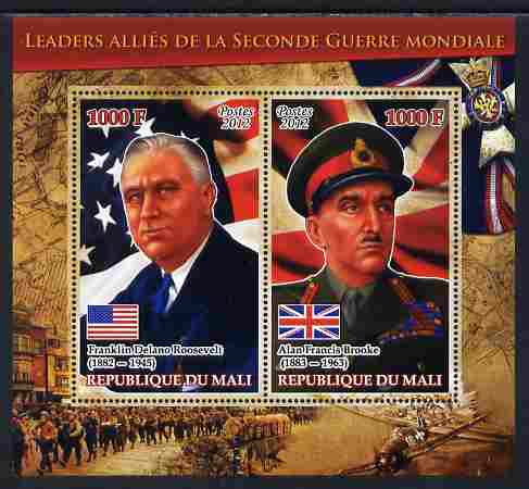 Mali 2012 Allied Leaders of WW2 - Roosevelt & Brooke large perf sheetlet containing 2 values unmounted mint