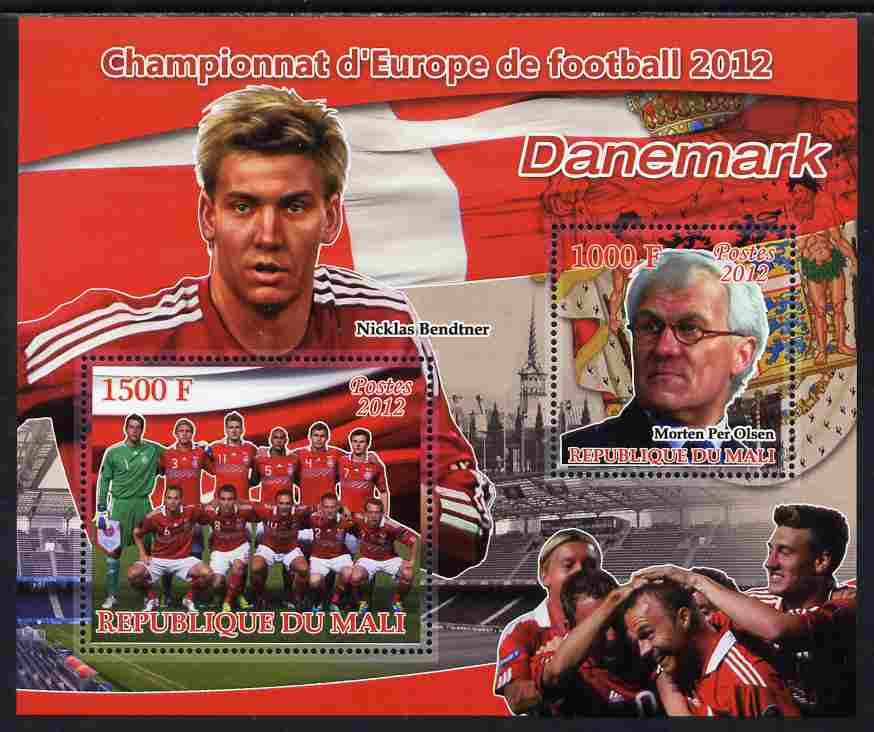 Mali 2012 European Footbal Championship - Denmark large perf s/sheet containing 2 values unmounted mint