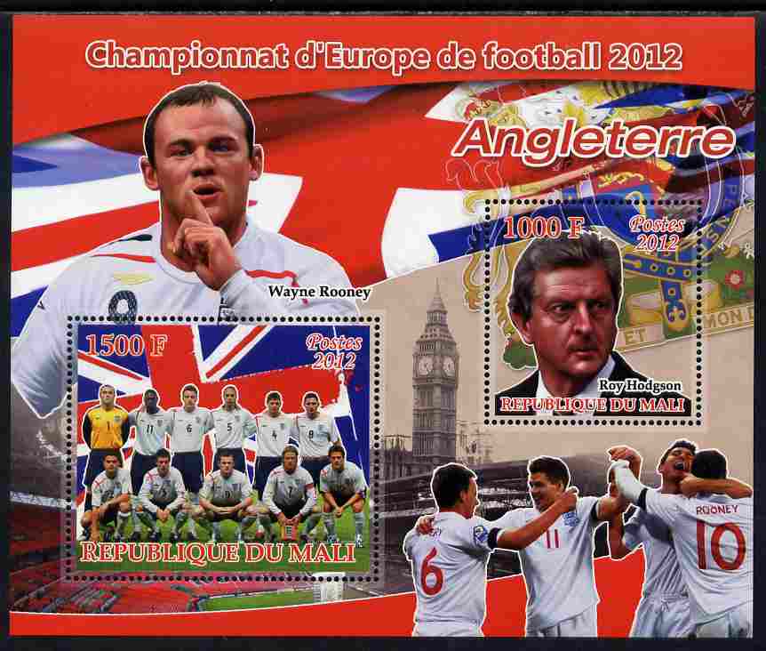 Mali 2012 European Footbal Championship - England large perf s/sheet containing 2 values unmounted mint