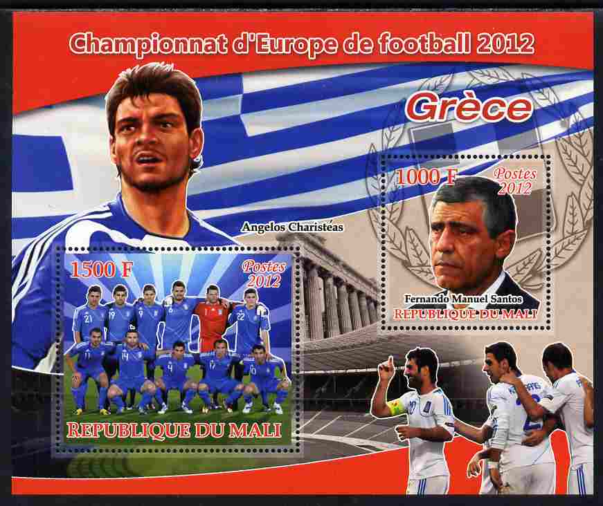Mali 2012 European Footbal Championship - Greece large perf s/sheet containing 2 values unmounted mint