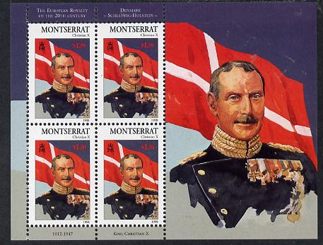 Montserrat 1998 Famous People of the 20th Century - King Christian X of Denmark perf sheetlet containing 4 vals unmounted mint as SG 1081a