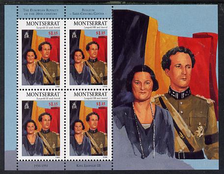 Montserrat 1998 Famous People of the 20th Century - King Leopold & Queen Astrid of Belgium perf sheetlet containing 4 vals unmounted mint as SG 1072a