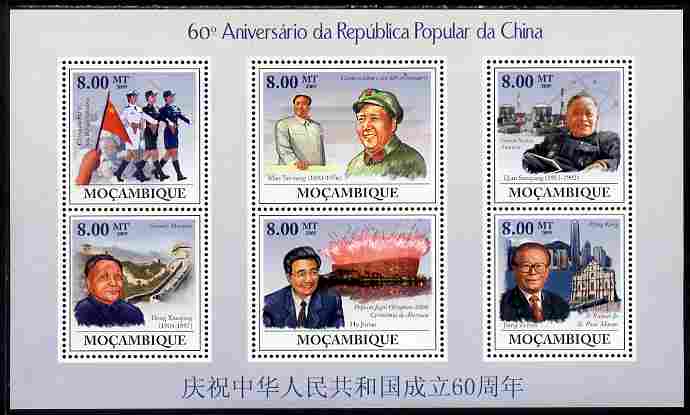 Mozambique 2009 60th Anniversary of Republic of China perf sheetlet containing 6 vaues unmounted mint