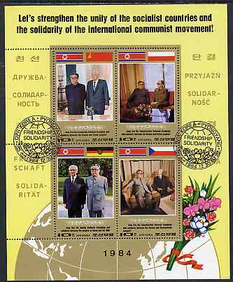 North Korea 1984 Visit to Europe sheetlet containing 4 values (Communist Movement), fine cto used, SG MS N2463a
