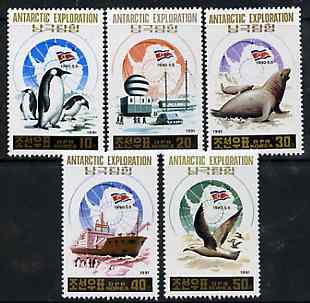 North Korea 1991 Antarctic Exploration perf set of 5 (Map & Flag) unmounted mint, SG N3054-58