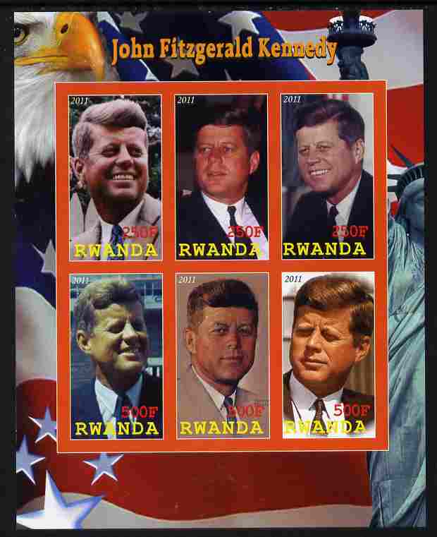 Rwanda 2011 John F Kennedy imperf sheetlet containing 6 values unmounted mint