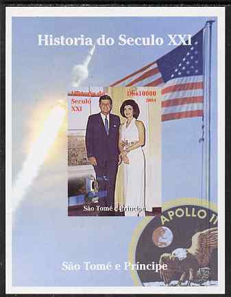St Thomas & Prince Islands 2004 History of the 21st Century #07 Kennedy & Apollo 11 imperf m/sheet unmounted mint. Note this item is privately produced and is offered purely on its thematic appeal