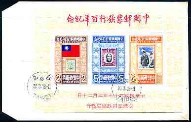 Taiwan 1978 Stamp Centenary perf m/sheet on reverse of illustrated cover for Rocpex with first day cancel (20 March 1978)
