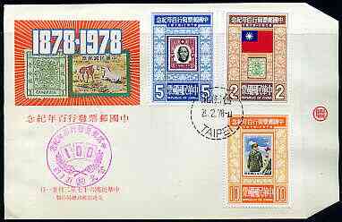 Taiwan 1978 Stamp Centenary perf set of 3 on illustrated cover with first day cancel