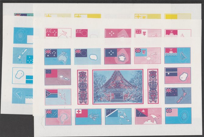 Tuvalu 1986 South Pacific Forum complete set of 14 plus label - the set of 5 imperf proof sheets comprising 3 individual colours (magenta, cyan & yellow) with 2-colour and all 4 colour composites (total 70 stamp proofs) as SG 407a all unmounted mint