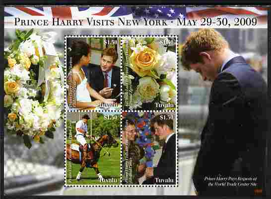 Tuvalu 2009 Prince Harry Visits New York perf sheetlet containing 4 values unmounted mint