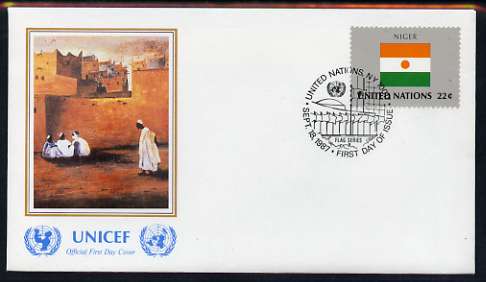 United Nations (NY) 1987 Flags of Member Nations #8 (Niger) on illustrated cover with special first day cancel