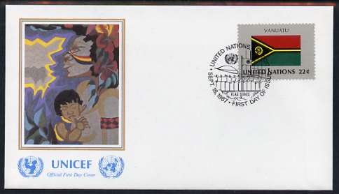 United Nations (NY) 1987 Flags of Member Nations #8 (Vanuatu) on illustrated cover with special first day cancel