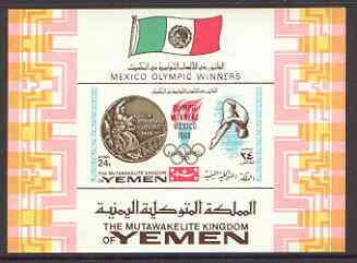 Yemen - Royalist 1968 Mexico Olympics 24B (Diving) imperf m/sheet with Flag at top unmounted mint