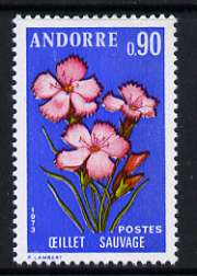 Andorra - French 1973 Wild Pinks 90c from Pyrenean Flowers set of 3 unmounted mint, SG F250