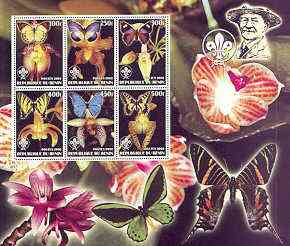Benin 2002 Orchids & Butterflies special large perf sheet containing 6 values each with Scouts Logo unmounted mint