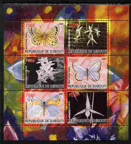 Djibouti 2007 Butterflies & Orchids #5 perf sheetlet containing 6 values unmounted mint. Note this item is privately produced and is offered purely on its thematic appeal