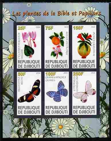 Djibouti 2010 Butterflies & Plants from the Bible #1 imperf sheetlet containing 6 values unmounted mint