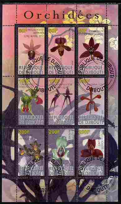 Djibouti 2010 Orchids perf sheetlet containing 9 values fine cto used