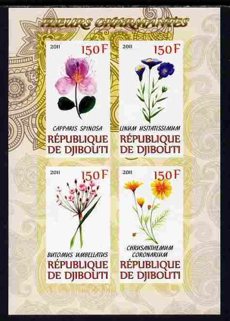 Djibouti 2011 Beautiful Flowers #2 imperf sheetlet containing 4 values unmounted mint