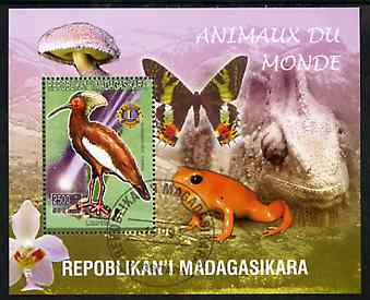Madagascar 1999 Animals of the World #18 perf m/sheet showing Lampira with Lions Int Logo, background shows Frog, Butterfly, Reptile, Fungi & Orchid, fine cto used