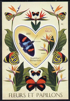 Madagascar 2014 Flowers & Butterflies #1 perf souvenir sheet containing heart shaped value unmounted mint