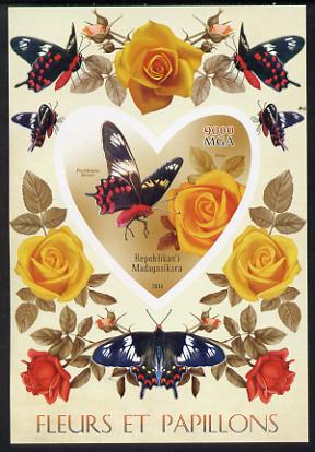 Madagascar 2014 Flowers & Butterflies #2 imperf souvenir sheet containing heart shaped value unmounted mint