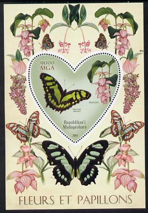 Madagascar 2014 Flowers & Butterflies #6 perf souvenir sheet containing heart shaped value unmounted mint