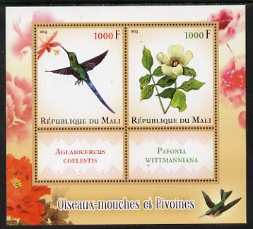 Mali 2014 Hummingbirds & Peonies perf sheetlet containing two values & two labels unmounted mint